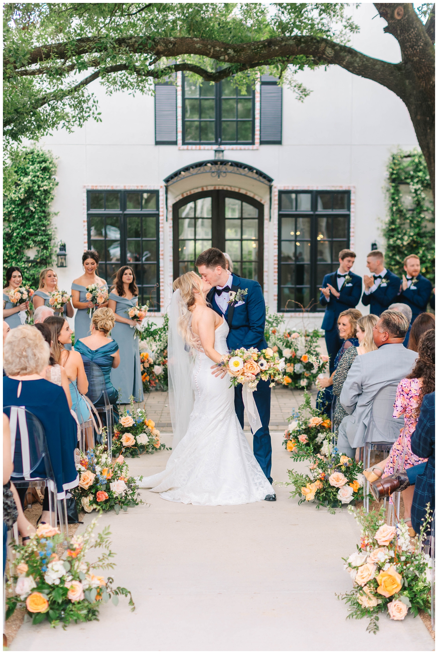Early in the planning process, Christen, Hannah, the Day-of Coordinator, and I met at Peach to determine the best spot for this outdoor wedding ceremony. Christen could not have imagined a more perfect spot to marry her best friend than the spot in front of the beautiful chapel with the branches of a gorgeous live oak hanging above. Piney Rose Flowers & Decor incorporated whimsical, loose florals along the ceremony aisle and at the altar to make it feel like a meadow that you might happen upon when driving through the European country-side. Their ceremony was so meaningful and beautiful. These two never took our eyes off each other. It was obvious how much love and respect they have for each other.